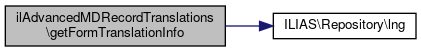 Here is the call graph for this function:| ilAdvancedMDRecordTranslations::getFormTranslationInfo | ( | string | $active_language | ) |