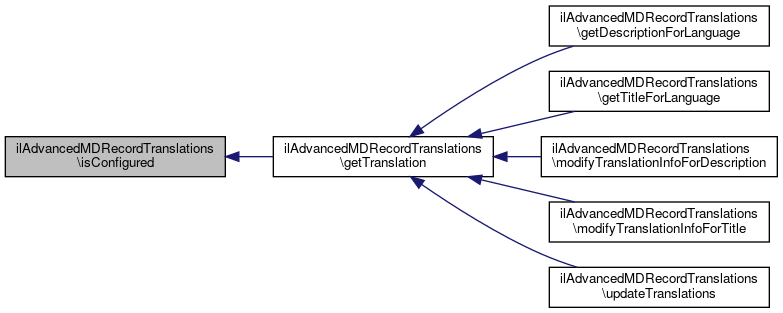 Here is the caller graph for this function:| ilAdvancedMDRecordTranslations::isConfigured | ( | string | $lang_key | ) |
