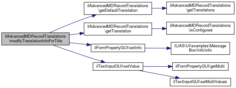 Here is the call graph for this function:| ilAdvancedMDRecordTranslations::modifyTranslationInfoForTitle | ( | ilPropertyFormGUI | $form, |