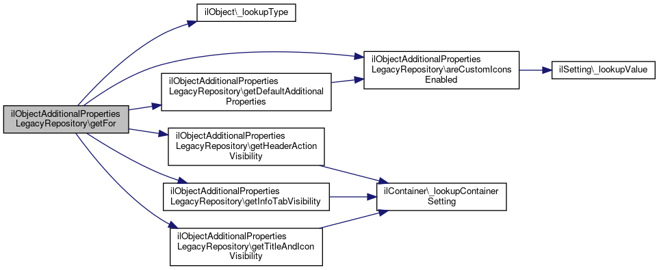 Here is the caller graph for this function:| ilObjectAdditionalPropertiesLegacyRepository::getFor | ( | int | $object_id | ) |