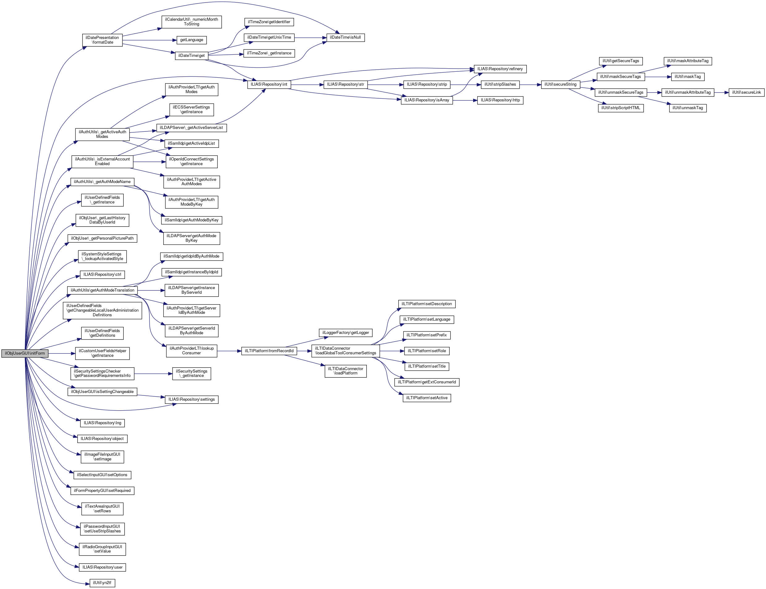 References $_SERVER, Vendor\Package\$a, Vendor\Package\$e, ilObjectGUI\$id, $lang, XapiProxy\$req, ilObjectGUI\$settings, ilAuthUtils\_getActiveAuthModes(), ilAuthUtils\_getAuthModeName(), ilUserDefinedFields\_getInstance(), ilObjUser\_getLastHistoryDataByUserId(), ilObjUser\_getPersonalPicturePath(), ilAuthUtils\_isExternalAccountEnabled(), ilSystemStyleSettings\_lookupActivatedStyle(), ILIAS\Repository\ctrl(), ilDatePresentation\formatDate(), ilAuthUtils\getAuthModeTranslation(), ilUserDefinedFields\getChangeableLocalUserAdministrationDefinitions(), ilUserDefinedFields\getDefinitions(), ilCustomUserFieldsHelper\getInstance(), ilSecuritySettingsChecker\getPasswordRequirementsInfo(), IL_CAL_UNIX, ILIAS\Repository\int(), isSettingChangeable(), ILIAS\Repository\lng(), ILIAS\Repository\object(), ilImageFileInputGUI\setImage(), ilSelectInputGUI\setOptions(), ilFormPropertyGUI\setRequired(), ilTextAreaInputGUI\setRows(), ILIAS\Repository\settings(), ilPasswordInputGUI\setUseStripSlashes(), ilRadioGroupInputGUI\setValue(), SYSTEM_ROLE_ID, SYSTEM_USER_ID, ILIAS\Repository\user(), USER_FOLDER_ID, and ilUtil\yn2tf().