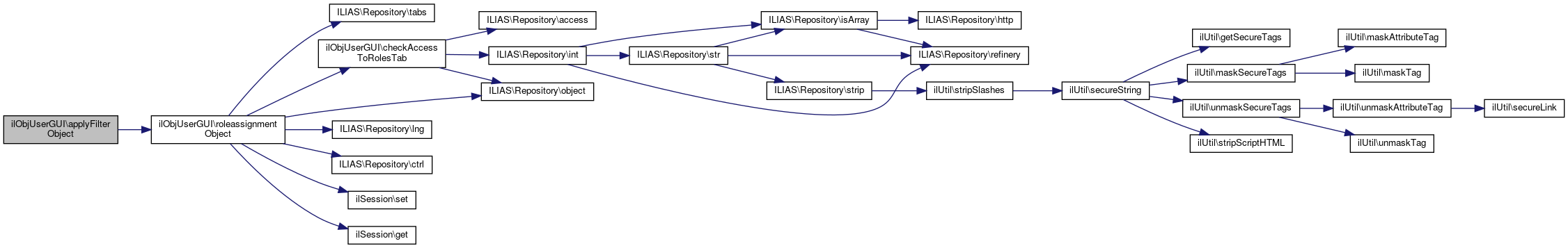 Here is the call graph for this function:| ilObjUserGUI::roleassignmentObject | ( | ) |
