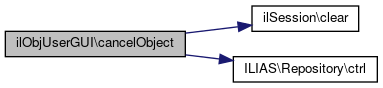 Here is the call graph for this function:| ilObjUserGUI::cancelObject | ( | ) |
