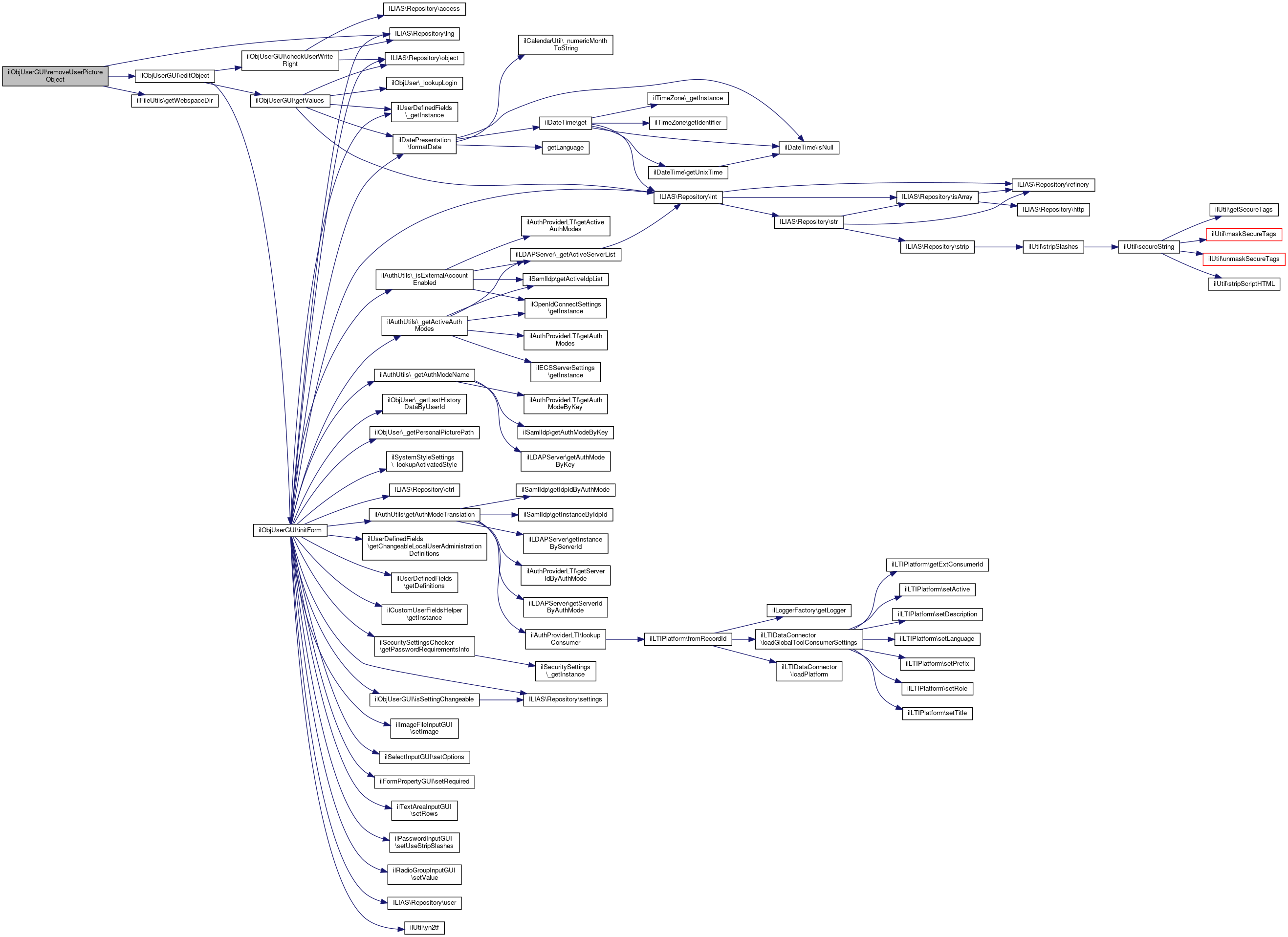 Here is the caller graph for this function:| ilObjUserGUI::removeUserPictureObject | ( | ) |
