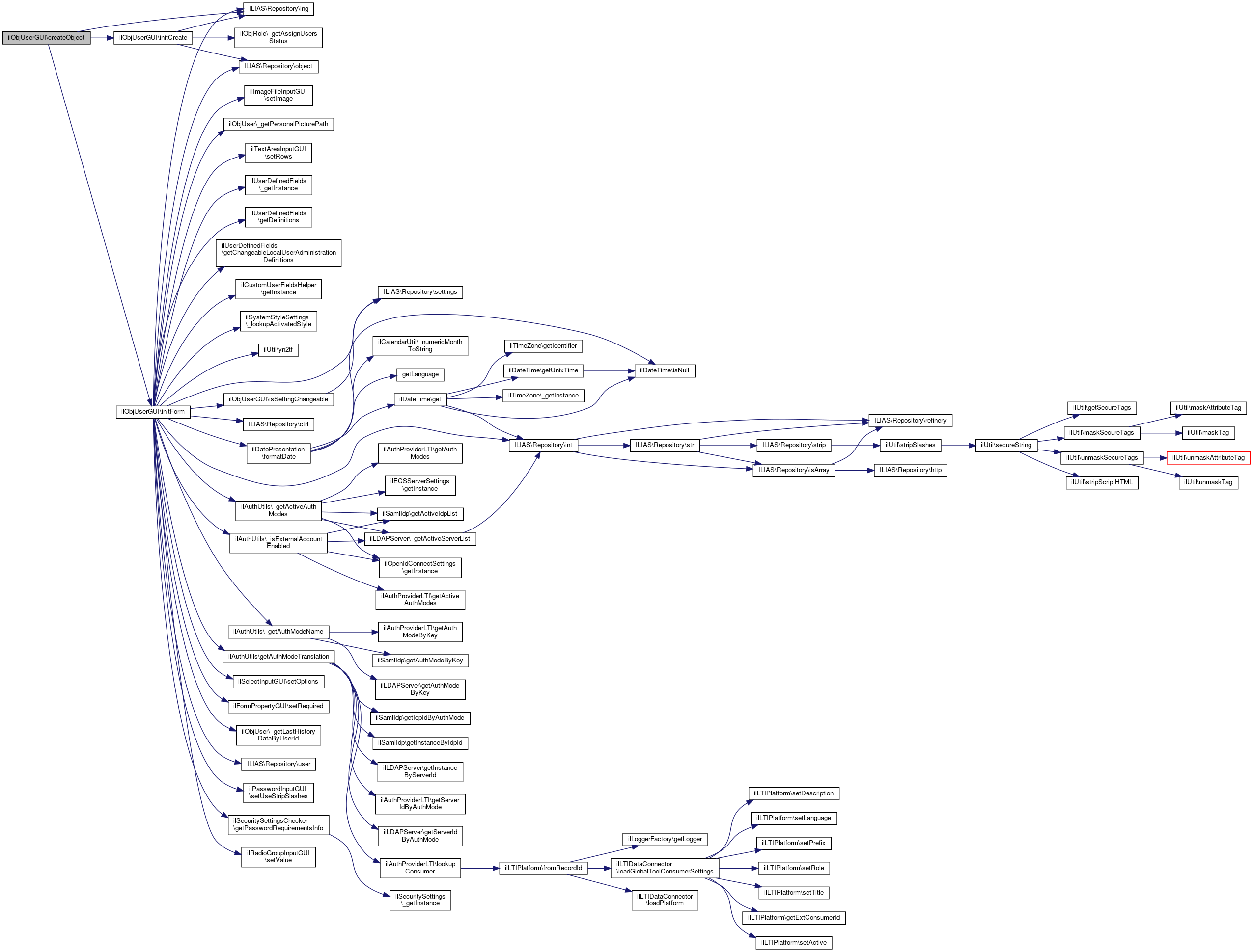 Here is the caller graph for this function:| ilObjUserGUI::createObject | ( | ) |