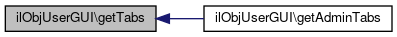 Here is the call graph for this function:| ilObjUserGUI::getAdminTabs | ( | ) |