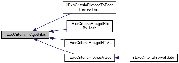 Here is the call graph for this function:| ilExcCriteriaFile::getFiles | ( | ) |