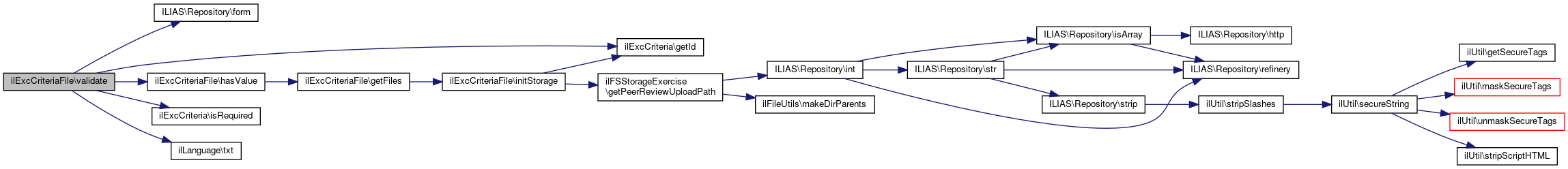 Here is the call graph for this function:| ilExcCriteriaFile::validate | ( | $a_value | ) |