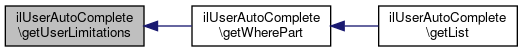 Here is the caller graph for this function:| ilUserAutoComplete::getUserLimitations | ( | ) |
