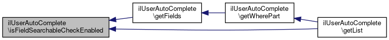 Here is the caller graph for this function:| ilUserAutoComplete::isFieldSearchableCheckEnabled | ( | ) |