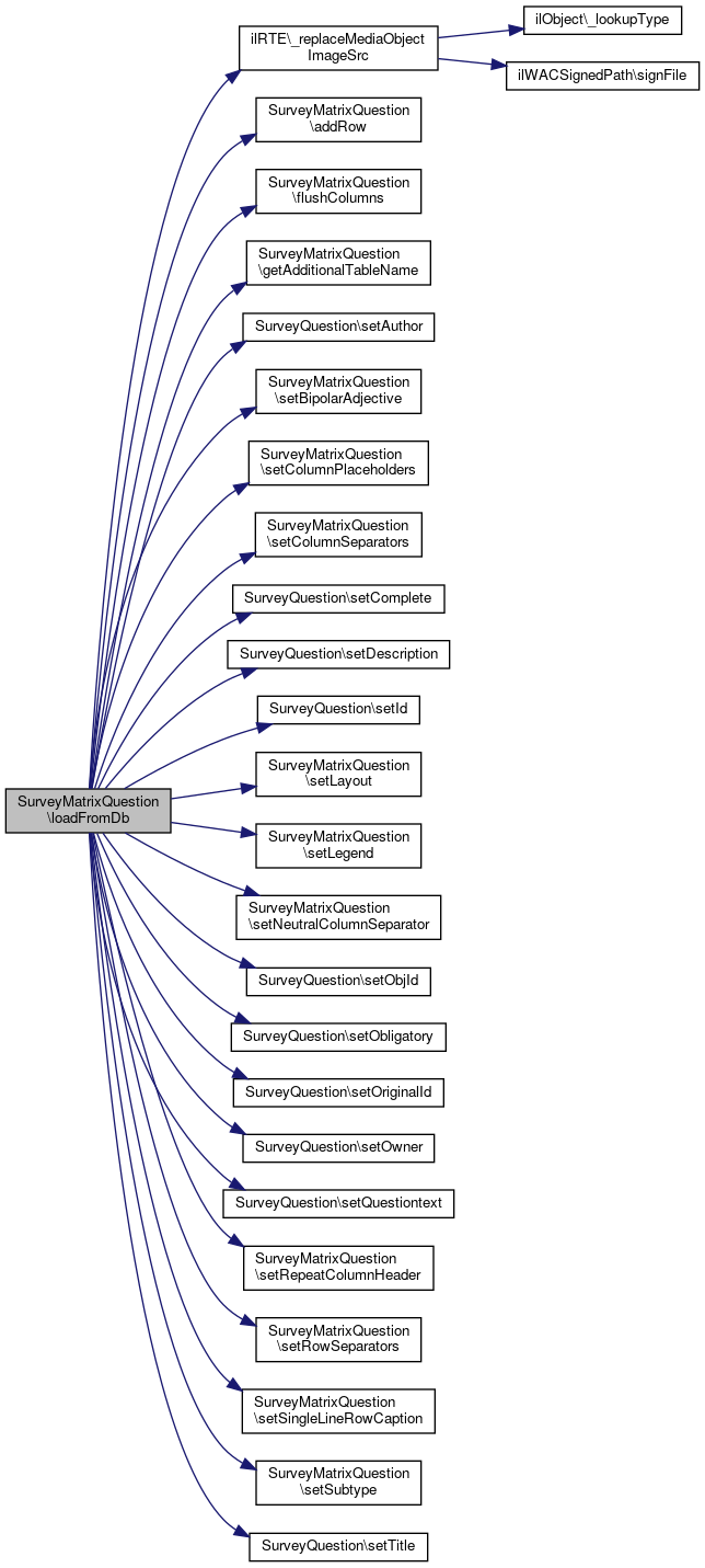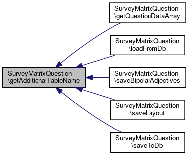 References SurveyQuestion\$db, $ilDB, SurveyQuestion\$original_id, getAdditionalTableName(), getBipolarAdjective(), getColumnPlaceholders(), getColumnSeparators(), SurveyQuestion\getId(), getLayout(), getLegend(), getNeutralColumnSeparator(), getRepeatColumnHeader(), getRowSeparators(), getSingleLineRowCaption(), getSubtype(), saveColumnsToDb(), and saveRowsToDb().