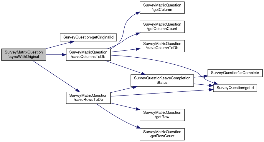 Here is the caller graph for this function:| SurveyMatrixQuestion::syncWithOriginal | ( | ) |
