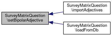 Here is the call graph for this function:| SurveyMatrixQuestion::setBipolarAdjective | ( | int | $a_index, |