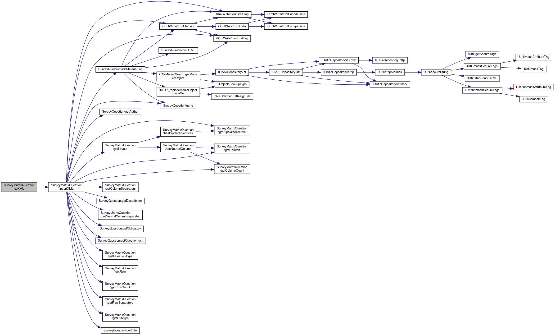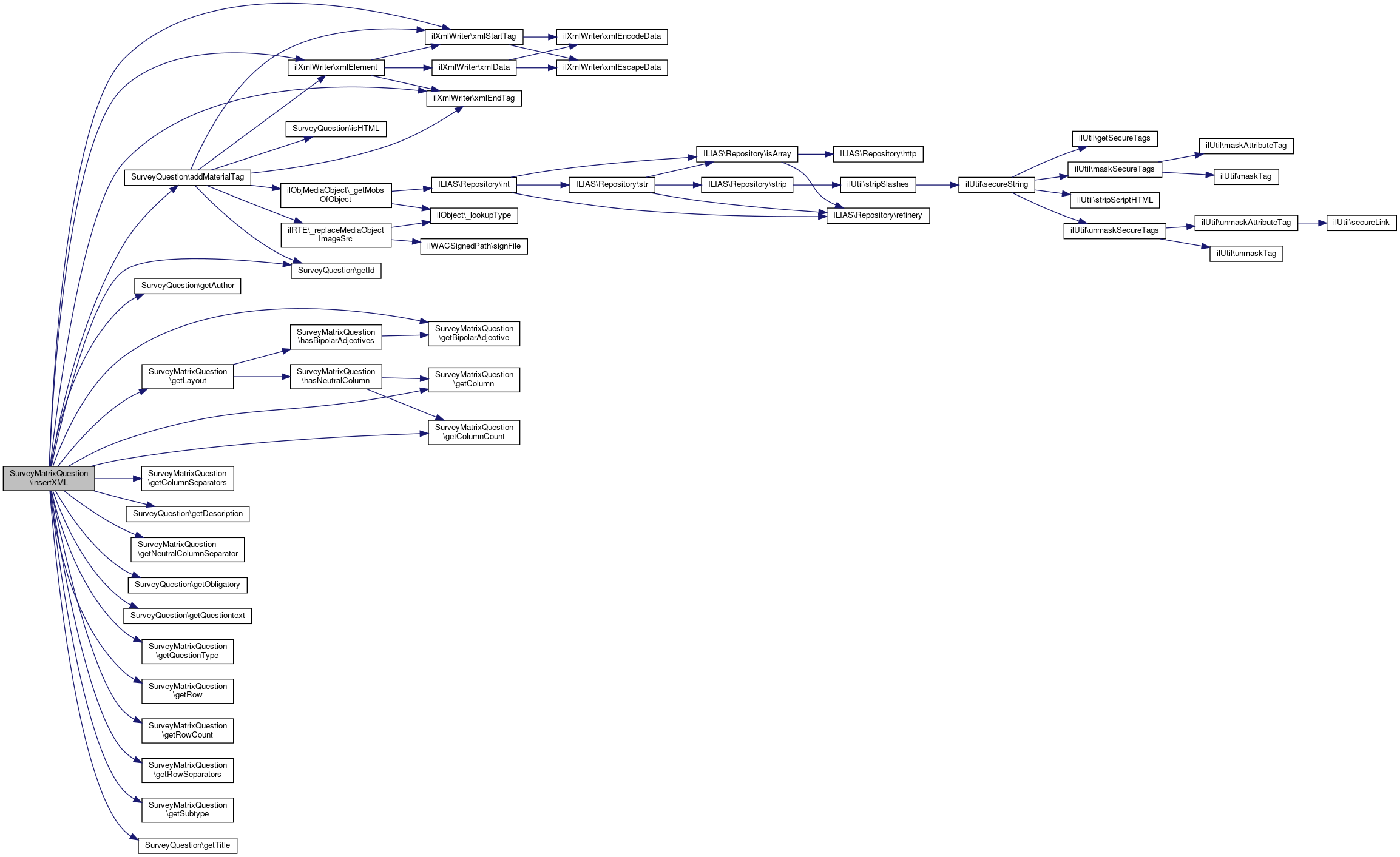 Here is the call graph for this function:| SurveyMatrixQuestion::toXML | ( | bool | $a_include_header = true,  |