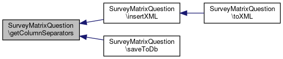 Here is the caller graph for this function:| SurveyMatrixQuestion::setColumnSeparators | ( | bool | $enable = false | ) |