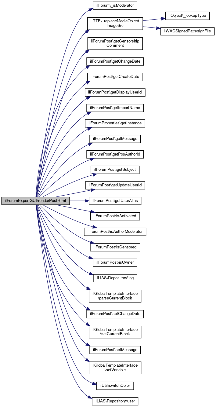 References ilForum\_isModerator(), ilRTE\_replaceMediaObjectImageSrc(), ilForumPost\getCensorshipComment(), ilForumPost\getChangeDate(), ilForumPost\getCreateDate(), ilForumPost\getDisplayUserId(), ilForumPost\getImportName(), ilForumProperties\getInstance(), ilForumPost\getMessage(), ilForumPost\getPosAuthorId(), ilForumPost\getSubject(), ilForumPost\getUpdateUserId(), ilForumPost\getUserAlias(), ilForumPost\isActivated(), ilForumPost\isAuthorModerator(), ilForumPost\isCensored(), ilForumPost\isOwner(), ILIAS\Repository\lng(), ilGlobalTemplateInterface\parseCurrentBlock(), ilForumPost\setChangeDate(), ilGlobalTemplateInterface\setCurrentBlock(), ilForumPost\setMessage(), ilGlobalTemplateInterface\setVariable(), ilUtil\switchColor(), and ILIAS\Repository\user().
