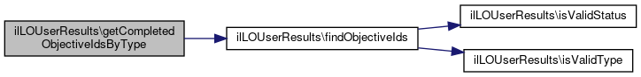 Here is the call graph for this function:| ilLOUserResults::getCompletedObjectiveIdsByType | ( | int | $a_type | ) |