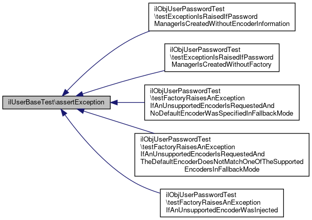 Referenced by ilObjUserPasswordTest\testExceptionIsRaisedIfPasswordManagerIsCreatedWithoutEncoderInformation(), ilObjUserPasswordTest\testExceptionIsRaisedIfPasswordManagerIsCreatedWithoutFactory(), ilObjUserPasswordTest\testFactoryRaisesAnExceptionIfAnUnsupportedEncoderIsRequestedAndNoDefaultEncoderWasSpecifiedInFallbackMode(), ilObjUserPasswordTest\testFactoryRaisesAnExceptionIfAnUnsupportedEncoderIsRequestedAndTheDefaultEncoderDoesNotMatchOneOfTheSupportedEncodersInFallbackMode(), and ilObjUserPasswordTest\testFactoryRaisesAnExceptionIfAnUnsupportedEncoderWasInjected().