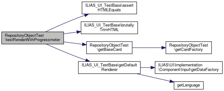 Here is the call graph for this function:| RepositoryObjectTest::testRenderWithProgressmeter | ( | ) |