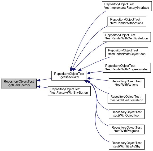 Here is the call graph for this function:| RepositoryObjectTest::testWithCertificateIcon | ( | ) |