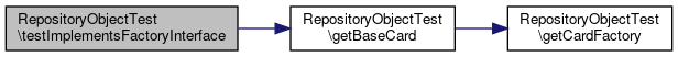 Here is the call graph for this function:| RepositoryObjectTest::testImplementsFactoryInterface | ( | ) |