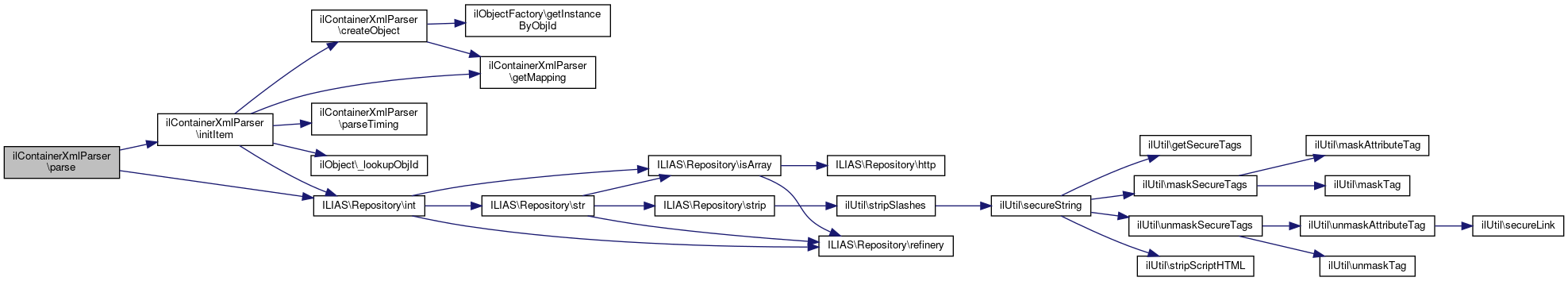 Here is the caller graph for this function:| ilContainerXmlParser::parse | ( | string | $a_root_id | ) |