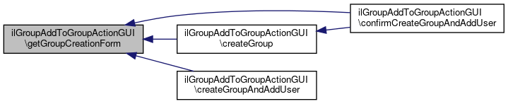 Here is the caller graph for this function:| ilGroupAddToGroupActionGUI::createGroupAndAddUser | ( | ) |