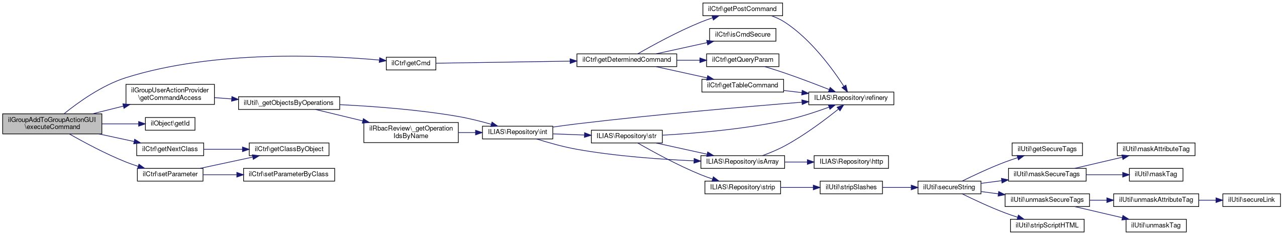 Here is the call graph for this function:| ilGroupAddToGroupActionGUI::executeCommand | ( | ) |