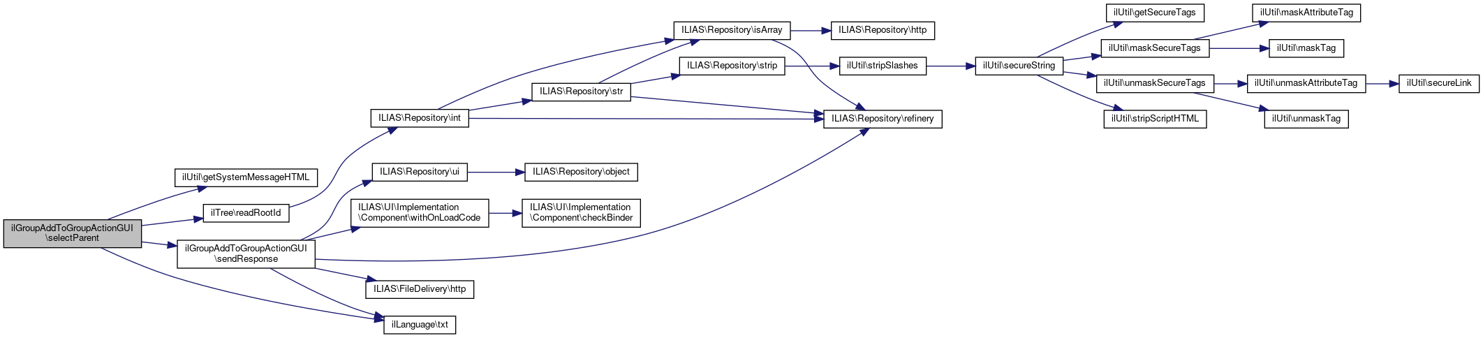 Here is the call graph for this function:| ilGroupAddToGroupActionGUI::selectParent | ( | ) |