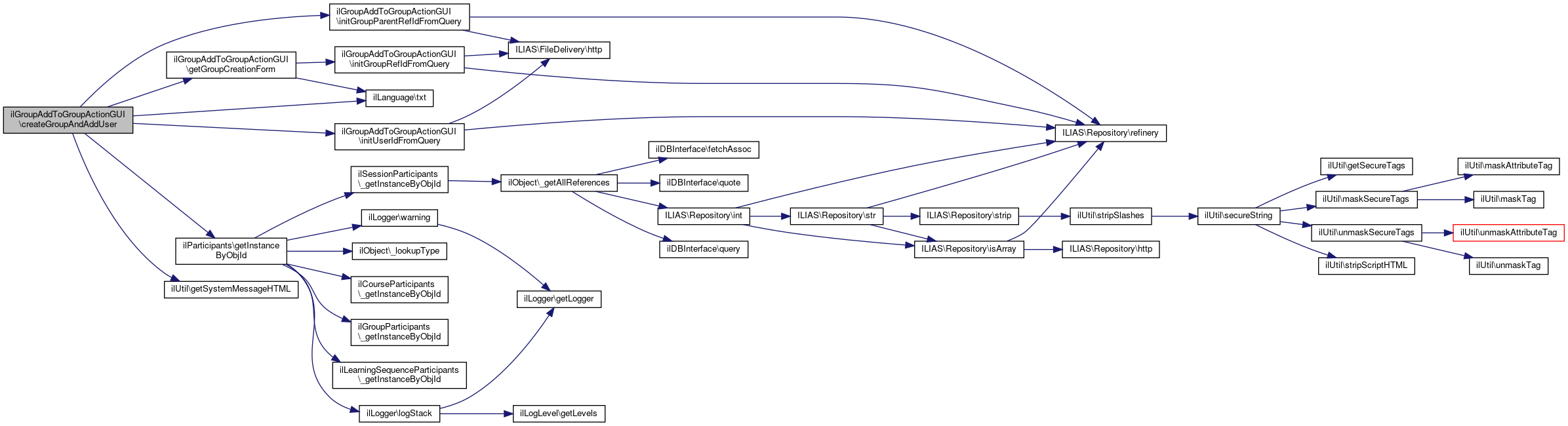 Here is the call graph for this function:| ilGroupAddToGroupActionGUI::confirmCreateGroupAndAddUser | ( | ) |
