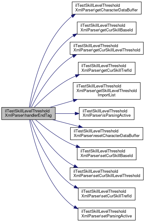 Here is the call graph for this function:| ilTestSkillLevelThresholdXmlParser::handlerEndTag | ( | $xmlParser, | |