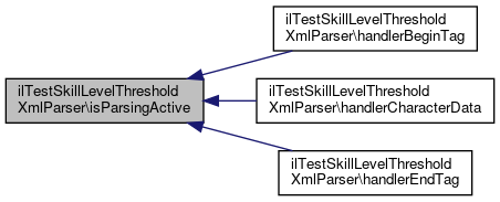 Here is the caller graph for this function:| ilTestSkillLevelThresholdXmlParser::isParsingActive | ( | ) |