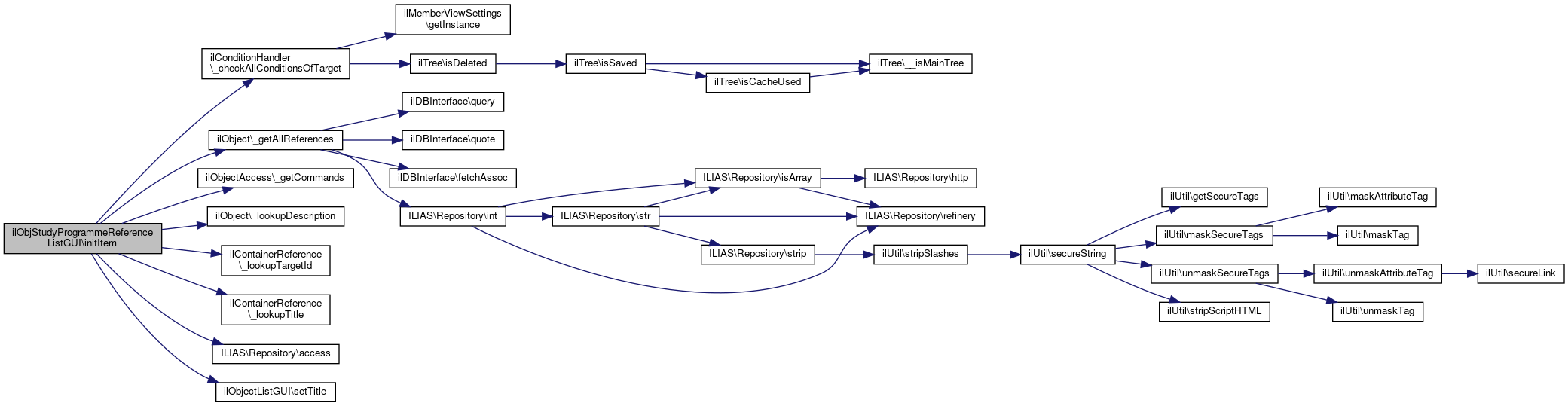 Here is the call graph for this function:| ilObjStudyProgrammeReferenceListGUI::initItem | ( | int | $ref_id, |