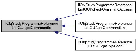 Here is the call graph for this function:| ilObjStudyProgrammeReferenceListGUI::getCommandId | ( | ) |