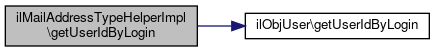 Here is the call graph for this function:| ilMailAddressTypeHelperImpl::getUserIdByLogin | ( | string | $login | ) |