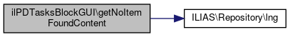 Here is the call graph for this function:| ilPDTasksBlockGUI::getNoItemFoundContent | ( | ) |