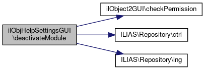 Here is the call graph for this function:| ilObjHelpSettingsGUI::deactivateModule | ( | ) |