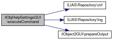 Here is the call graph for this function:| ilObjHelpSettingsGUI::executeCommand | ( | ) |