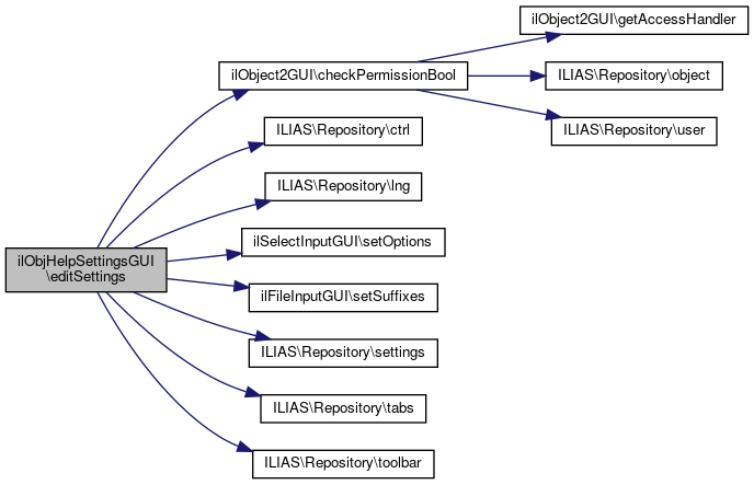 References ilObject2GUI\checkPermission(), ilObject2GUI\checkPermissionBool(), ILIAS\Repository\ctrl(), ILIAS\Repository\lng(), and ILIAS\Repository\settings().