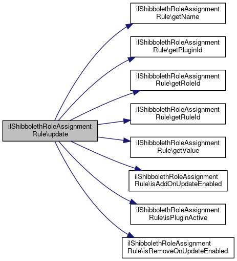 Here is the caller graph for this function:| ilShibbolethRoleAssignmentRule::update | ( | ) |