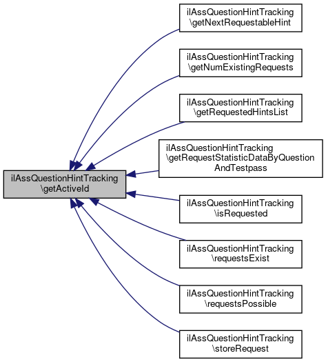 Here is the caller graph for this function:| ilAssQuestionHintTracking::getActiveId | ( | ) |