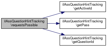 Here is the call graph for this function:| ilAssQuestionHintTracking::requestsPossible | ( | ) |