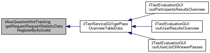 Here is the caller graph for this function:| ilAssQuestionHintTracking::getRequestStatisticDataByQuestionAndTestpass | ( | ) |