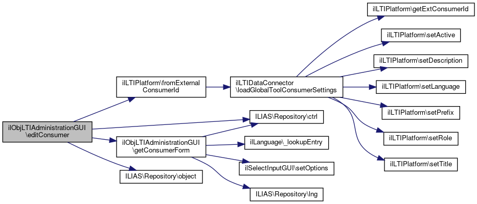 References ilObjectGUI\checkPermission(), ILIAS\Repository\ctrl(), ilLTIPlatform\fromExternalConsumerId(), getConsumerForm(), listConsumers(), and ILIAS\Repository\lng().