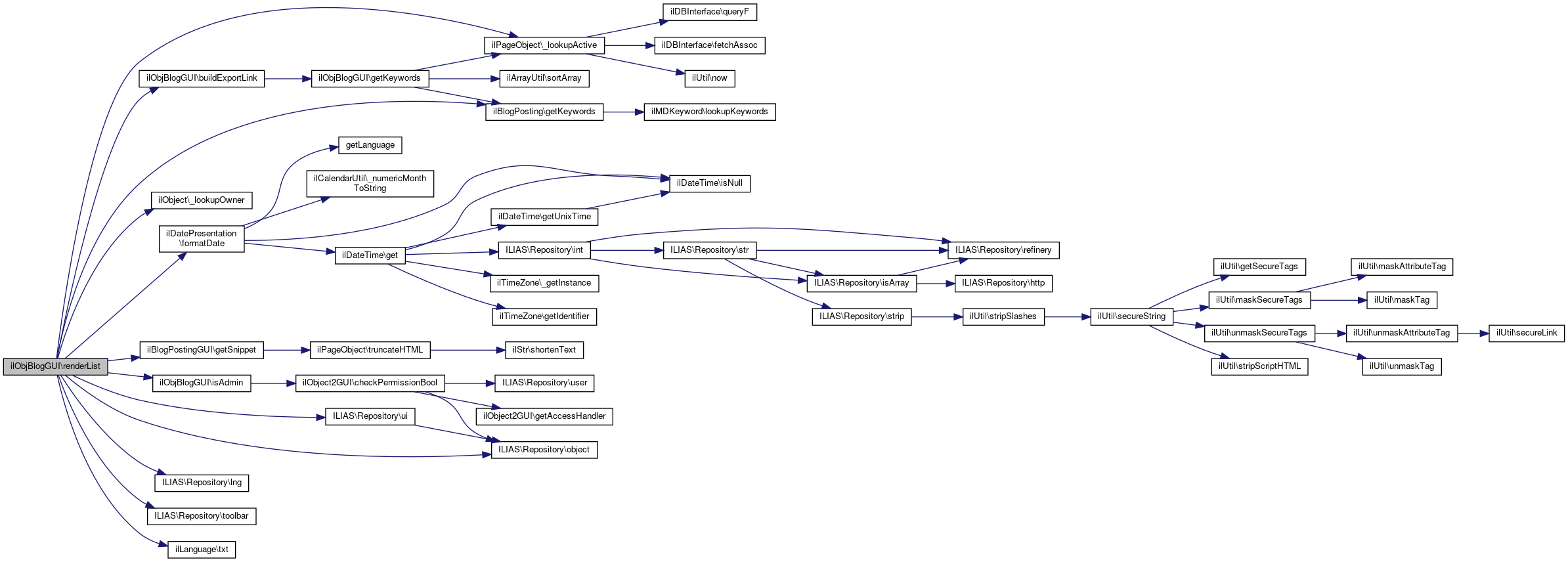 Here is the caller graph for this function:| ilObjBlogGUI::renderList | ( | array | $items, |