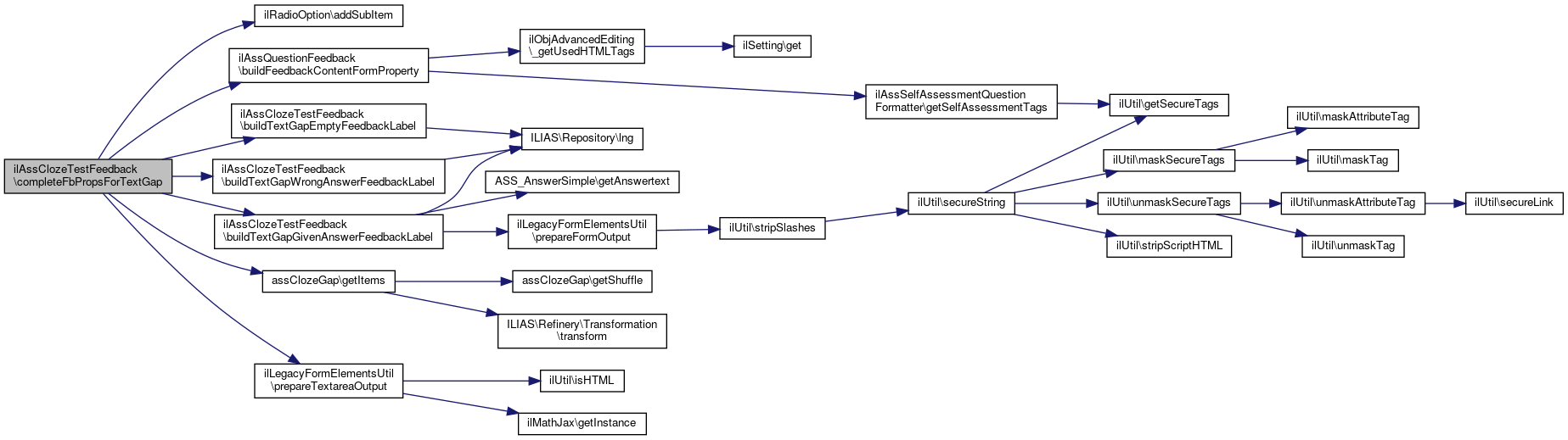 References ilRadioOption\addSubItem(), ilAssQuestionFeedback\buildFeedbackContentFormProperty(), buildTextGapEmptyFeedbackLabel(), buildTextGapGivenAnswerFeedbackLabel(), buildTextGapWrongAnswerFeedbackLabel(), assClozeGap\getItems(), and ilLegacyFormElementsUtil\prepareTextareaOutput().