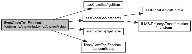 Here is the caller graph for this function:| ilAssClozeTestFeedback::determineAnswerIndexForAnswerValue | ( | assClozeGap | $gap, |