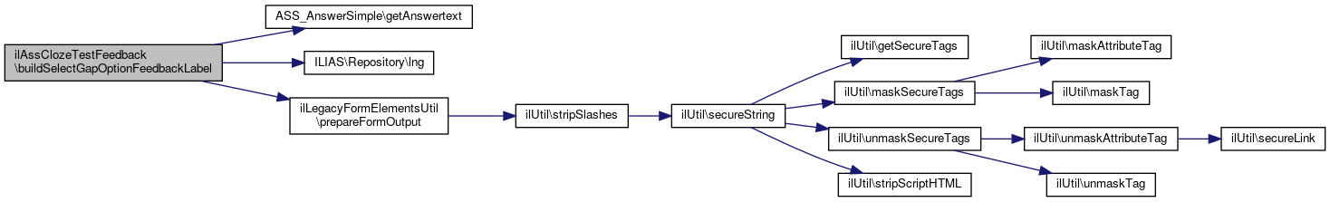 References ilRadioOption\addSubItem(), ilAssQuestionFeedback\buildFeedbackContentFormProperty(), buildSelectGapEmptyFeedbackLabel(), buildSelectGapOptionFeedbackLabel(), assClozeGap\getItems(), and ilLegacyFormElementsUtil\prepareTextareaOutput().