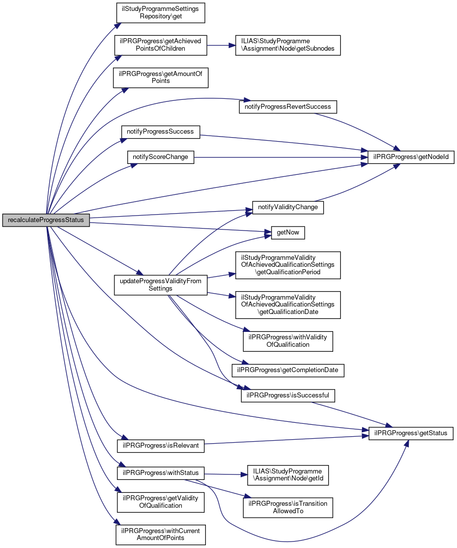 References ILIAS\LTI\ToolProvider\$settings, ilPRGProgress\COMPLETED_BY_SUBNODES, ilStudyProgrammeSettingsRepository\get(), ilPRGProgress\getAchievedPointsOfChildren(), ilPRGProgress\getAmountOfPoints(), ilPRGProgress\getNodeId(), getNow(), ilPRGProgress\getStatus(), ilPRGProgress\getValidityOfQualification(), ilPRGProgress\isRelevant(), ilPRGProgress\isSuccessful(), ilStudyProgrammeSettings\MODE_LP_COMPLETED, ilStudyProgrammeSettings\MODE_POINTS, ilStudyProgrammeSettings\MODE_UNDEFINED, notifyProgressRevertSuccess(), notifyProgressSuccess(), notifyScoreChange(), notifyValidityChange(), ilPRGProgress\STATUS_ACCREDITED, ilPRGProgress\STATUS_COMPLETED, ilPRGProgress\STATUS_IN_PROGRESS, updateProgressValidityFromSettings(), ilPRGProgress\withCurrentAmountOfPoints(), and ilPRGProgress\withStatus().