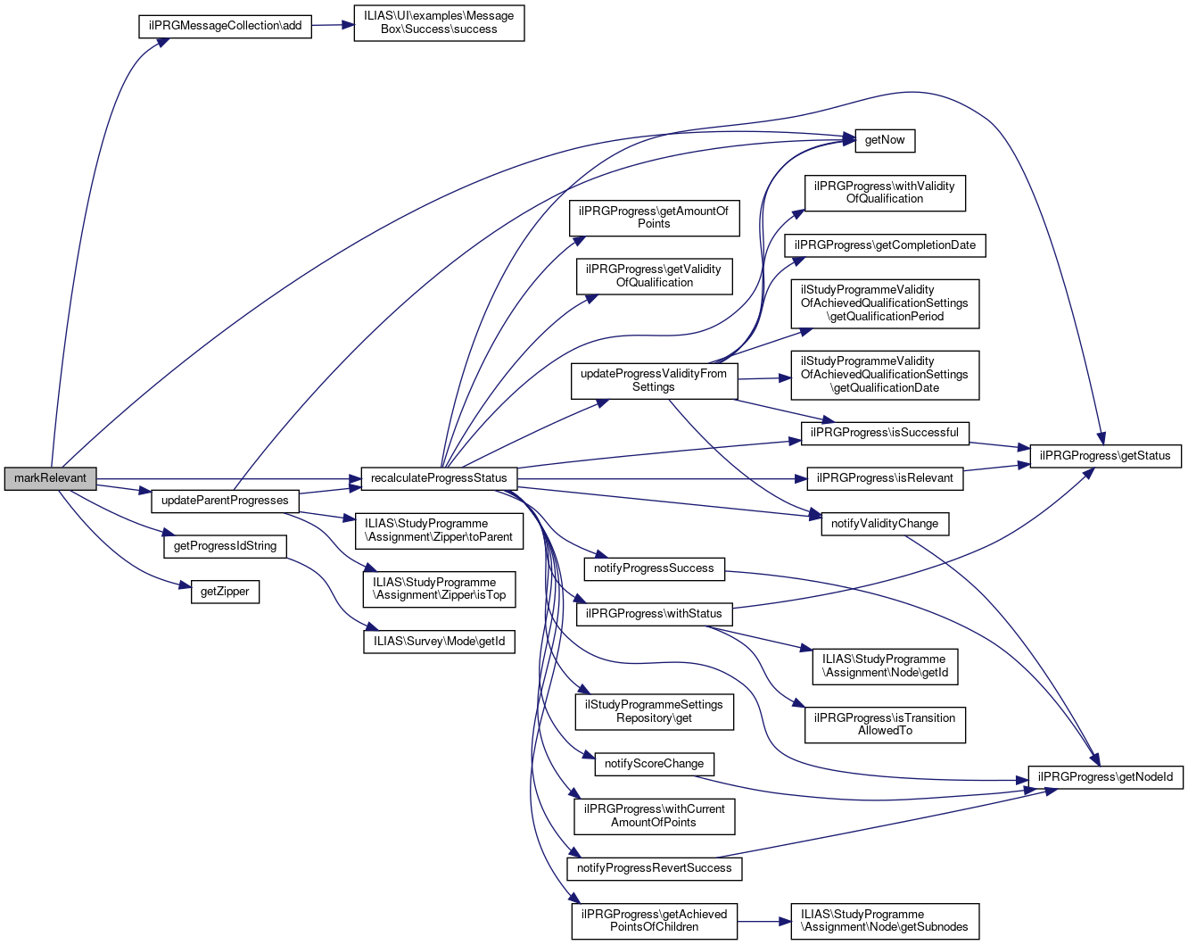 Here is the call graph for this function:| markRelevant | ( | ilStudyProgrammeSettingsRepository | $settings_repo, |